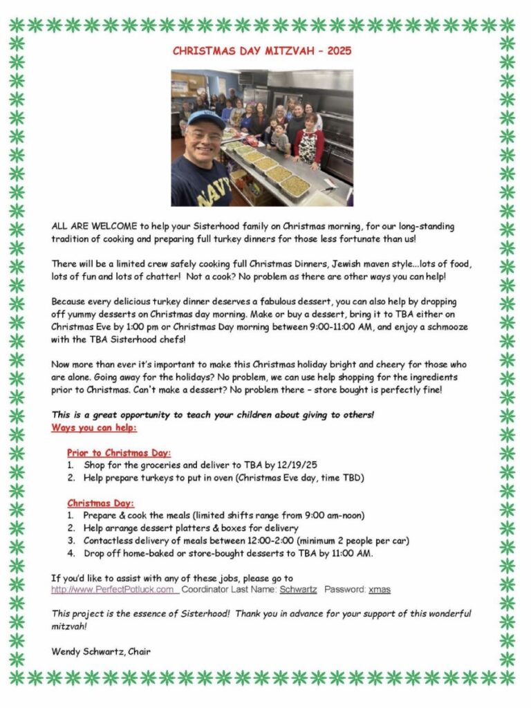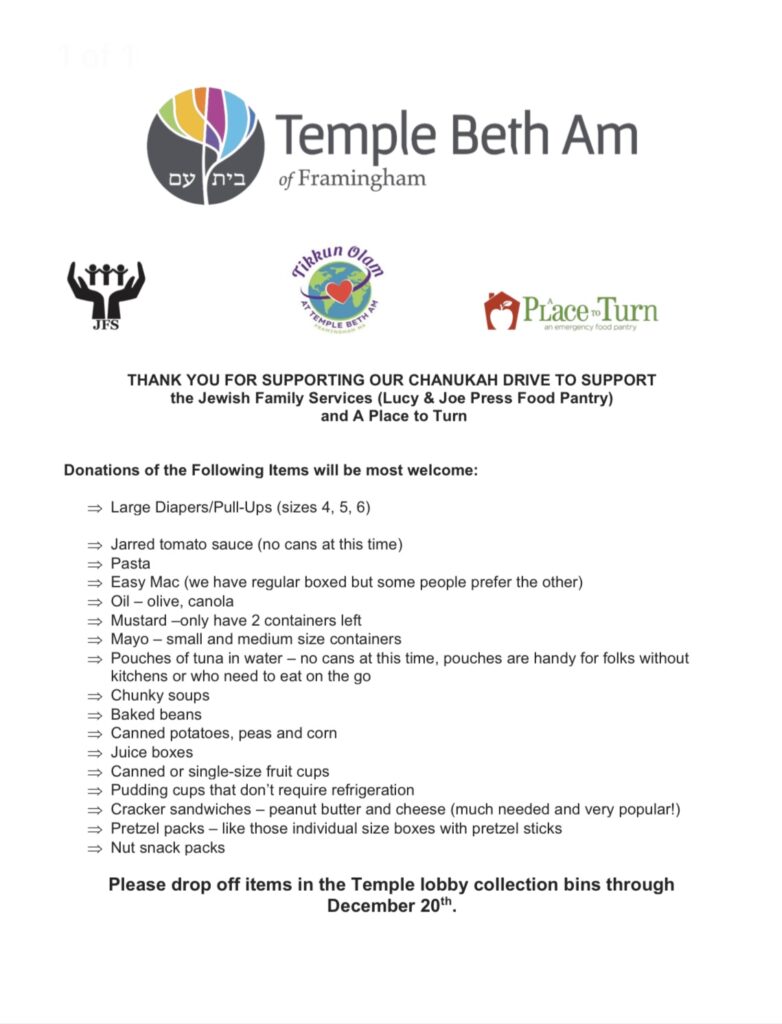Temple Beth Am offers several community groups to socialize, plan holiday celebrations and educational events as well as community service events.